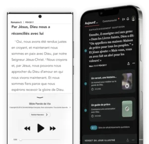 Emporte la Parole de Dieu partout avec toi grâce à la Bible App gratuite : lecture, audio, prières et partages, dans plus de 2 400 versions et 1 600 langues, sur tous tes appareils.